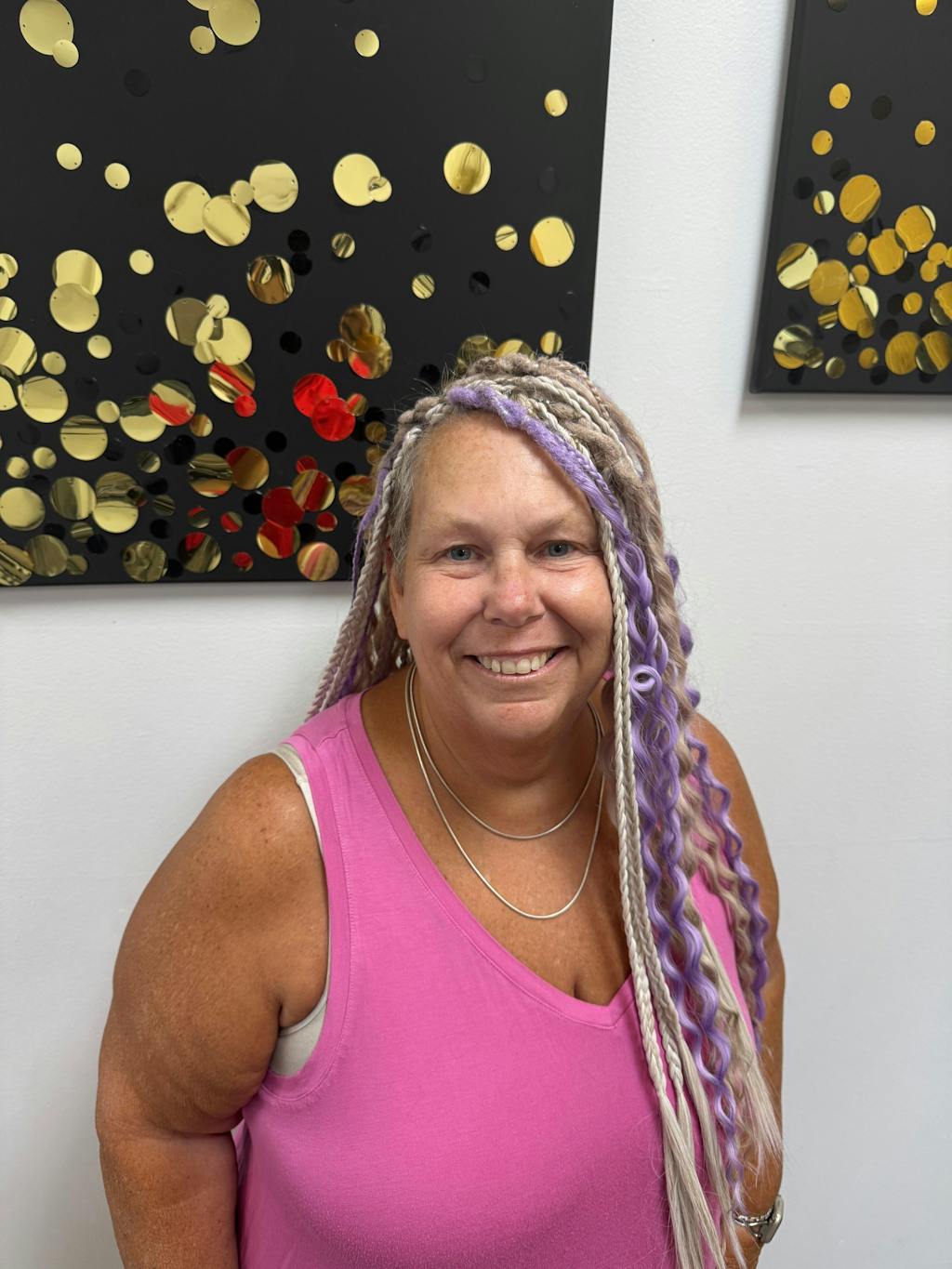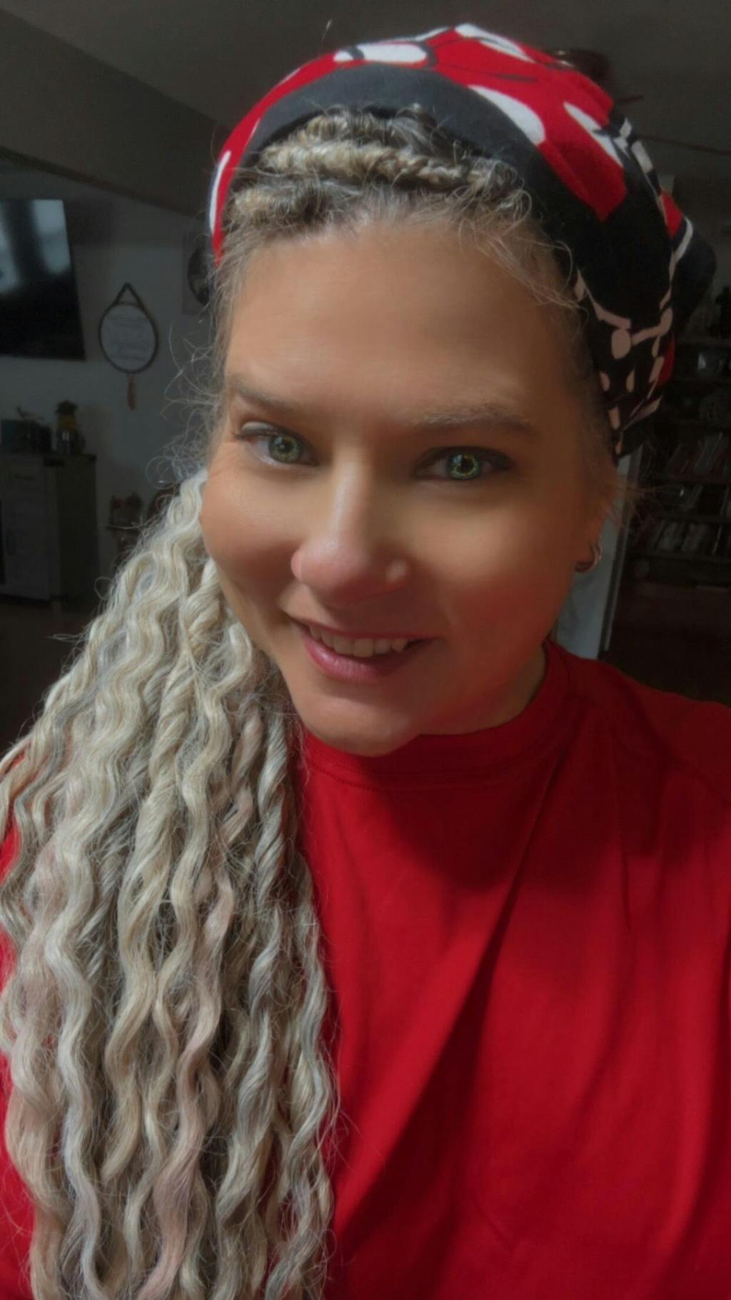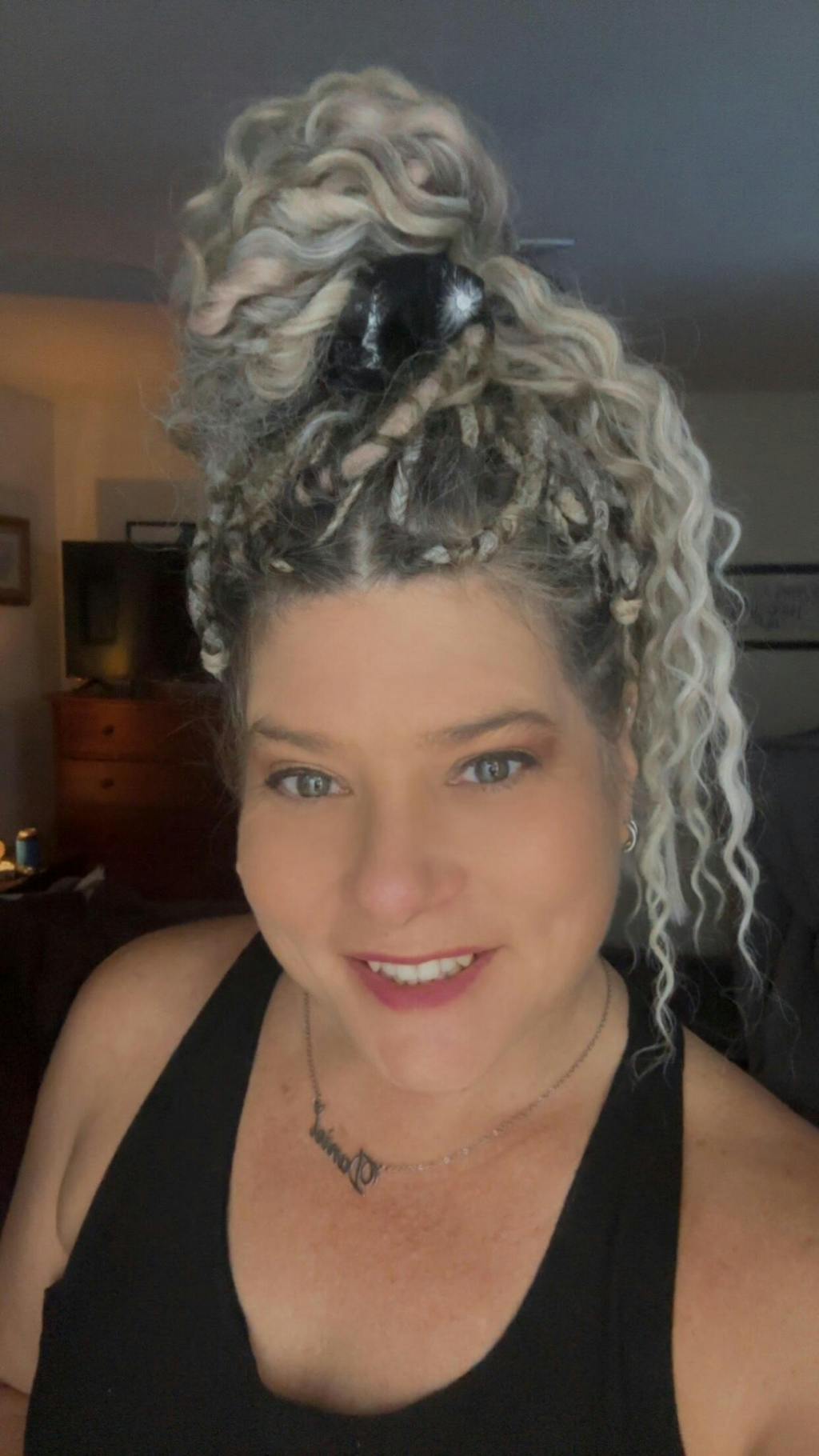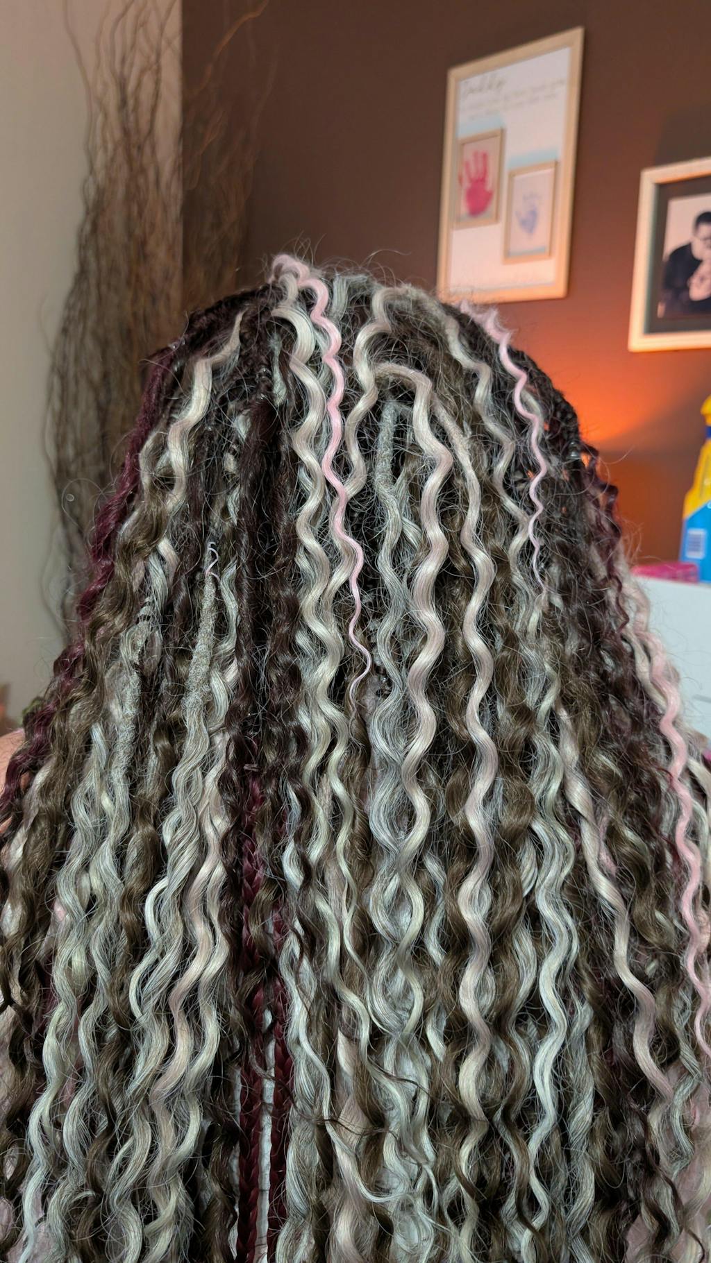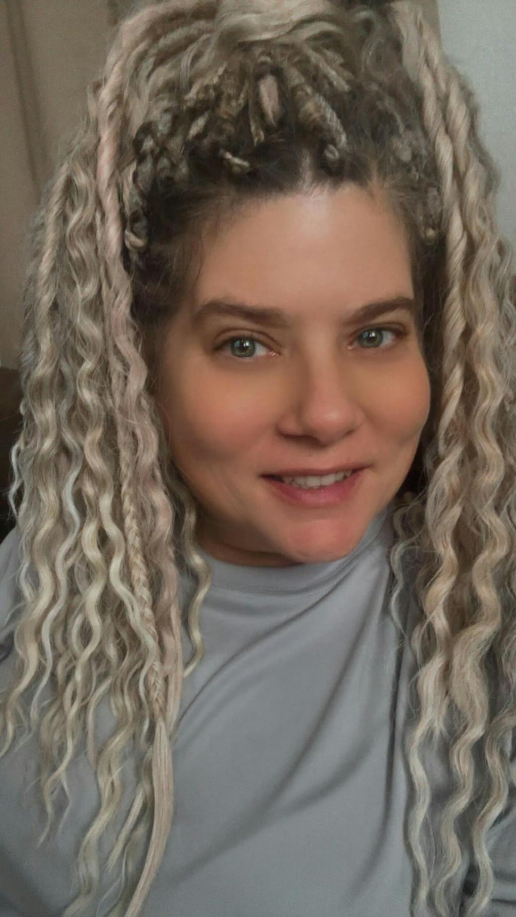 Peony is a gentle blend of blush pink and warm blonde in dreadlock extensions—subtle at the root, soft through the mids, and glowing toward the ends. She’s pastel femininity woven with natural tones, giving you just enough color to feel playful while staying effortlessly wearable.