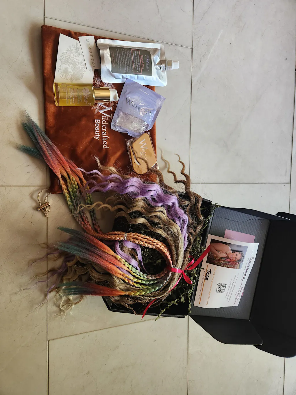 Wildcrafted extensions braid in seamlessly: two strands of your hair + one extension = a secure braid tied with Wild BandZ®. They protect your natural hair from heat and harsh products—no damage, no stress. When you’re ready, simply unbraid to remove.