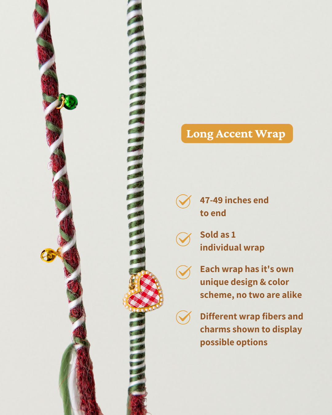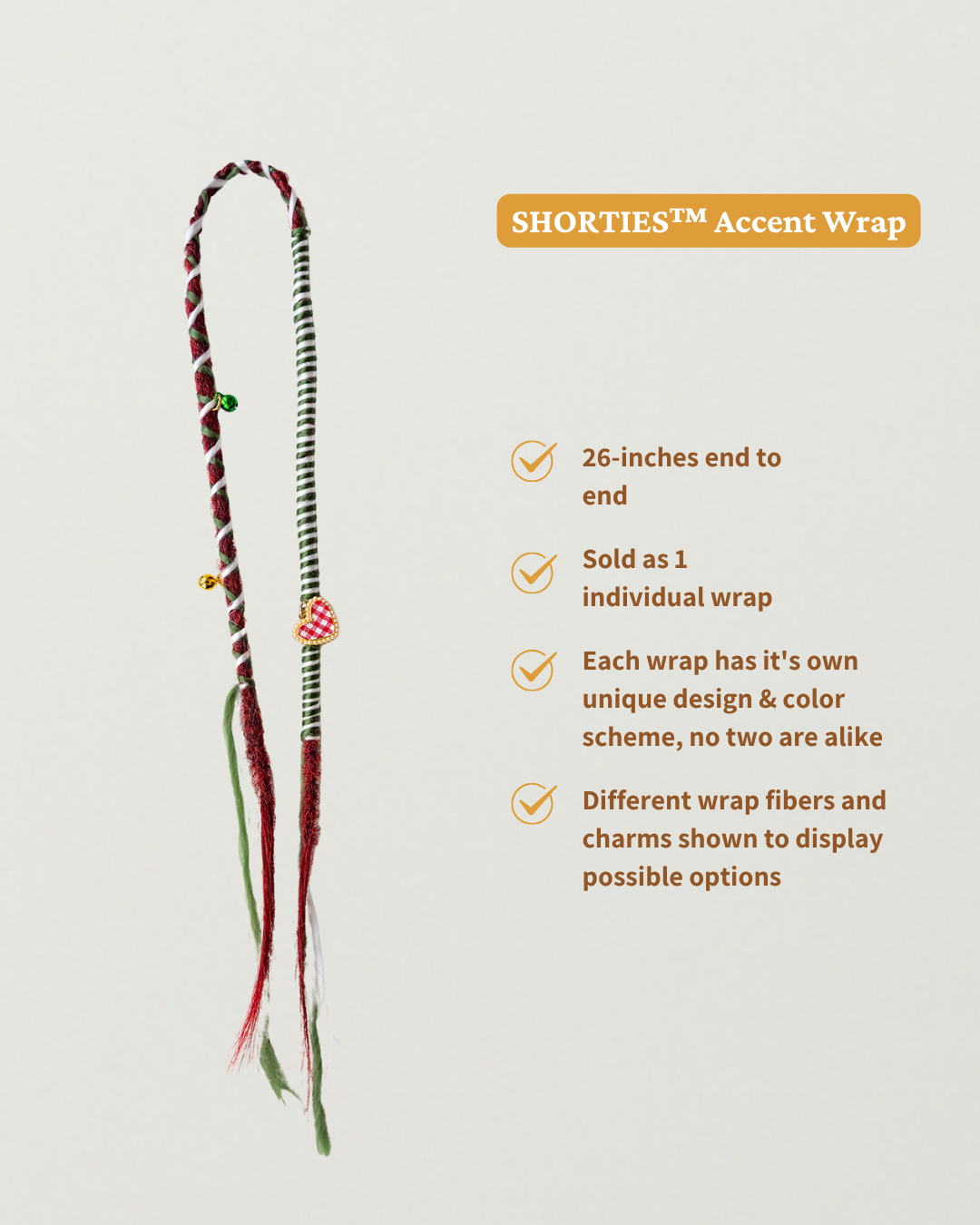 One handmade Merry Hair Wrap in your choice of Long or Shorties ™  length.