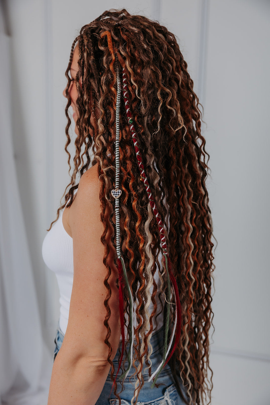 Braid it into your braid-in extensions or natural hair and use a Wild Band to secure it. Let it fall softly for a vintage touch that pairs beautifully with your holiday looks.