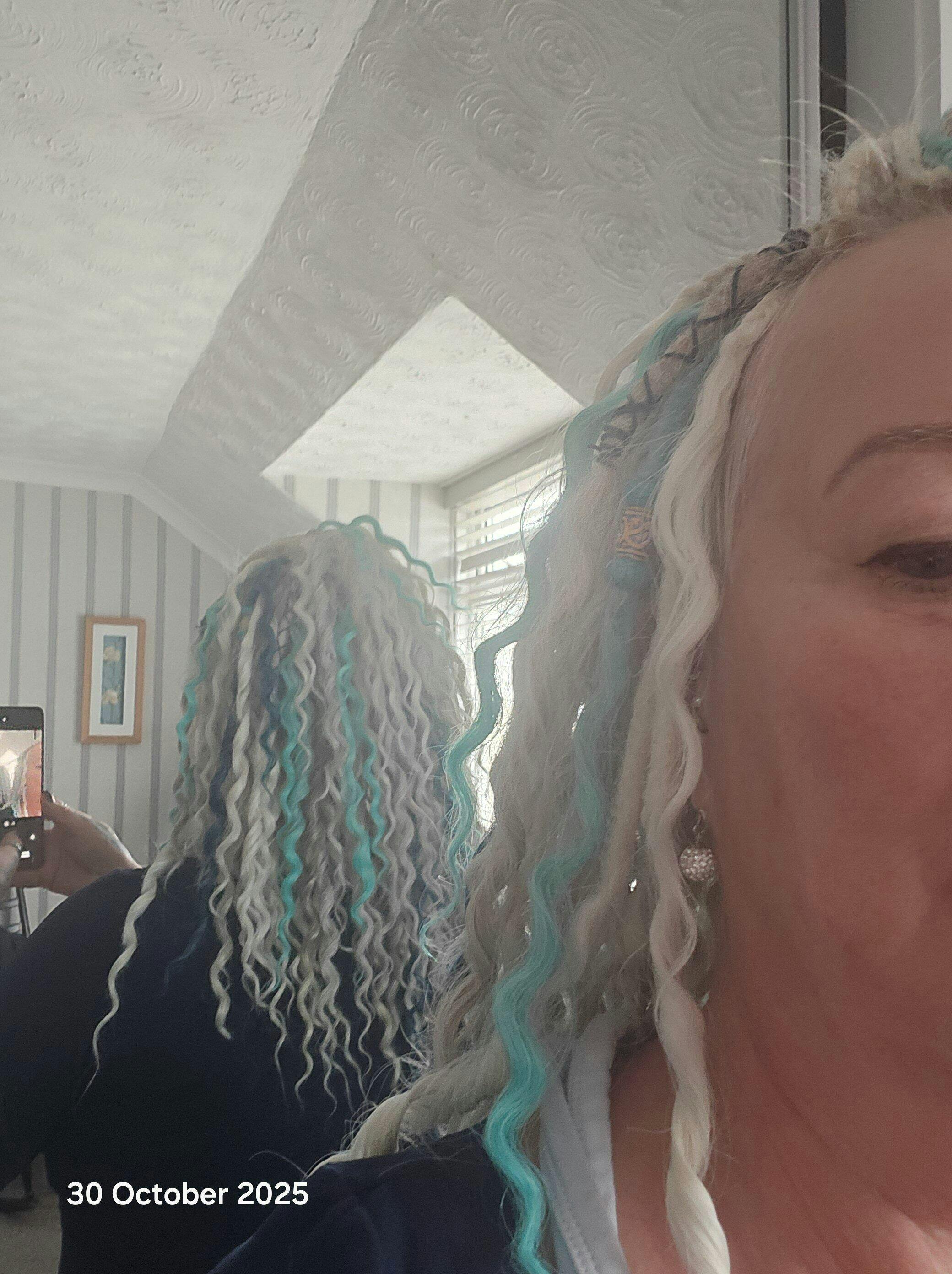 Aurora is a spellbinding sweep of luminous teal in synthetic dreadlocks—cool as glacier melt yet alive with the shimmer of dawn. Each sculpted wave reflects light like ripples under the Northern Lights, giving your hair a liquid-emerald flicker from root to tip. Wear her when you’re ready to radiate fearless confidence and let the world feel your electric calm.