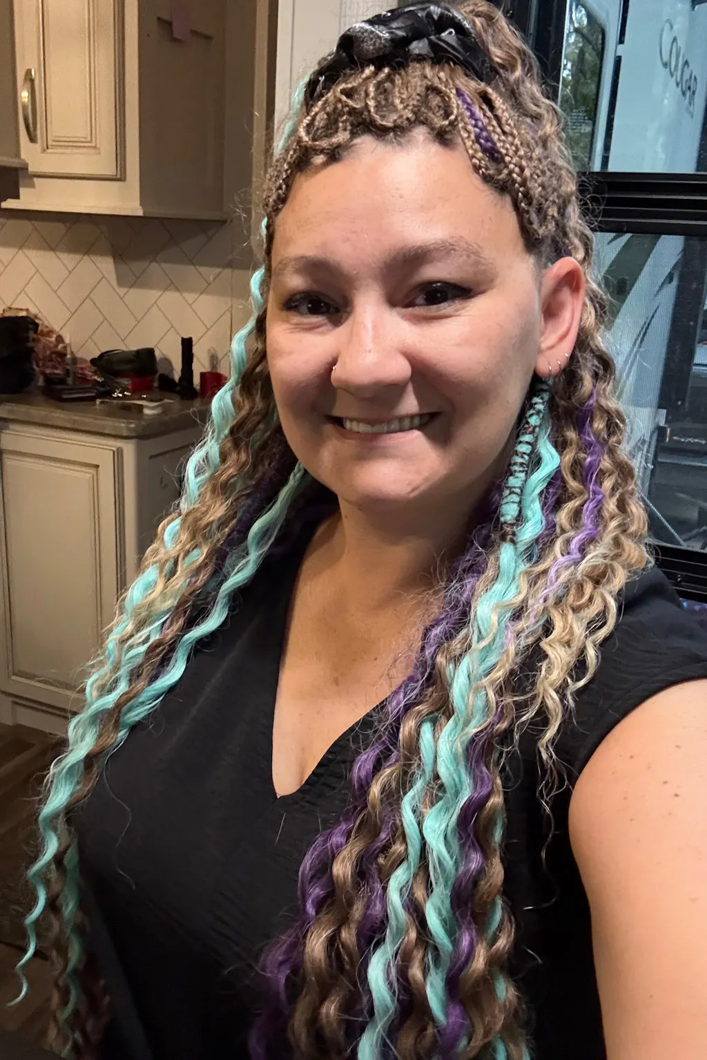 Venus – 5 Wavy Synthetic Braid-In Extensions (47–49 in.) with our Venus center for a more natural fall.