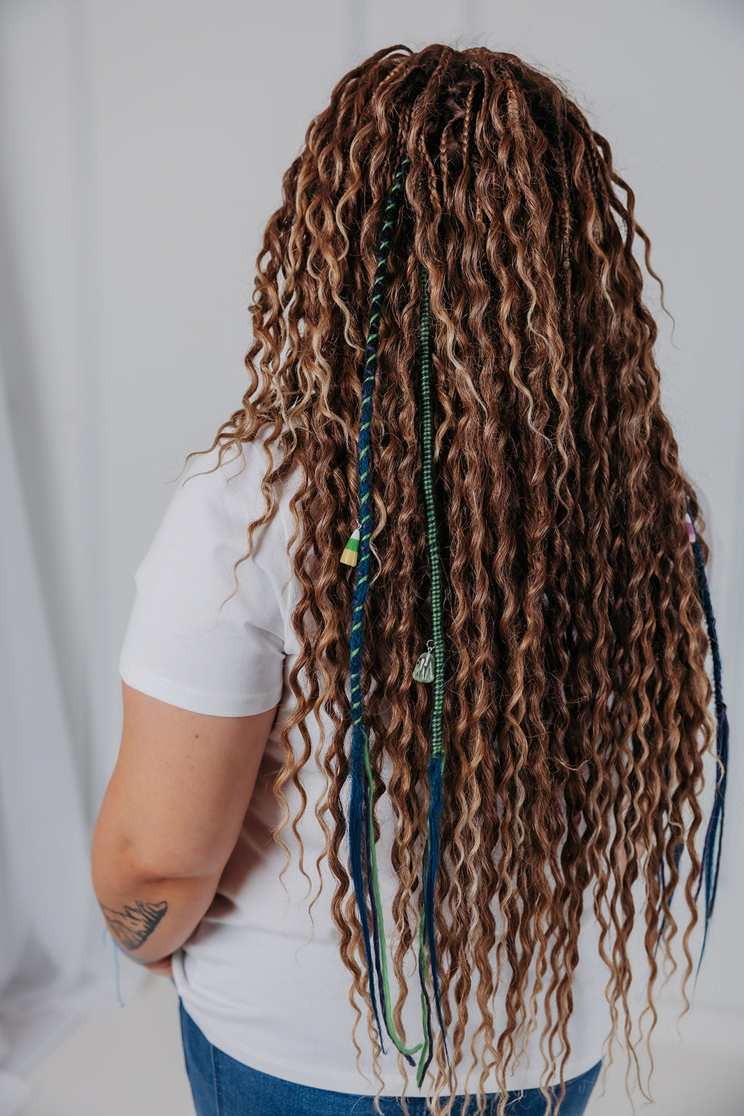 Simply braid Eclipse into your braid-in extensions or natural hair wherever you want her mysterious glow to shine. Place her front and center for a bold, cosmic statement, or tuck her in for a flash of surprise color that catches the light just right.