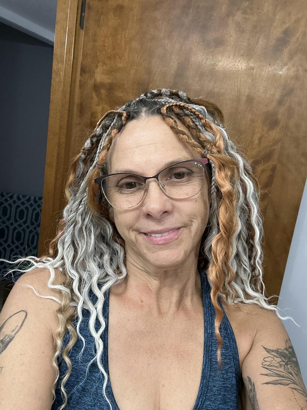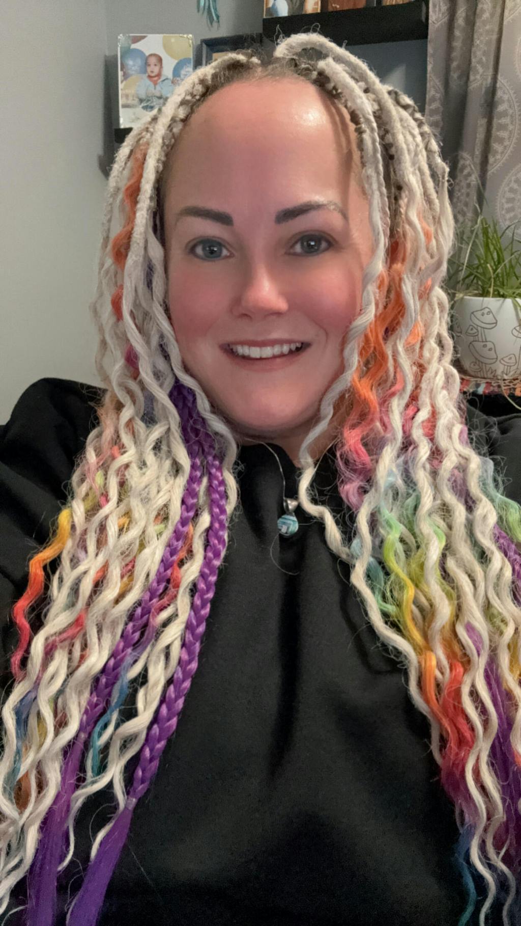 She’s electric! A bold, vibrant fusion of purple and fuchsia in synthetic dreadlocks that practically glows. Her depth of color is striking up close, yet powerful enough to turn heads across the room. Bold, daring, and full of life—Electric was made to stand out.