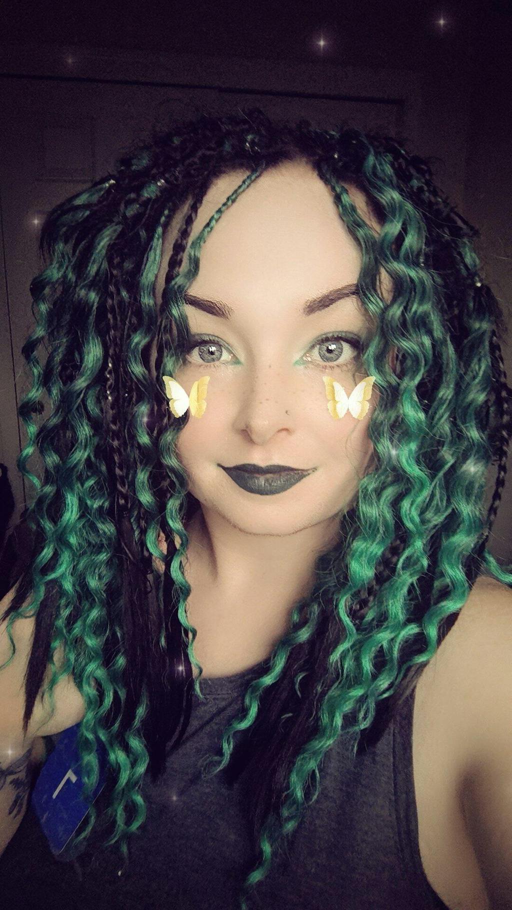 Looks LikeEmerald is a deep, jewel-toned green in dreadlock extensions that ombrés into a softer shade, layered with darker undertones that give her soul-rich depth....