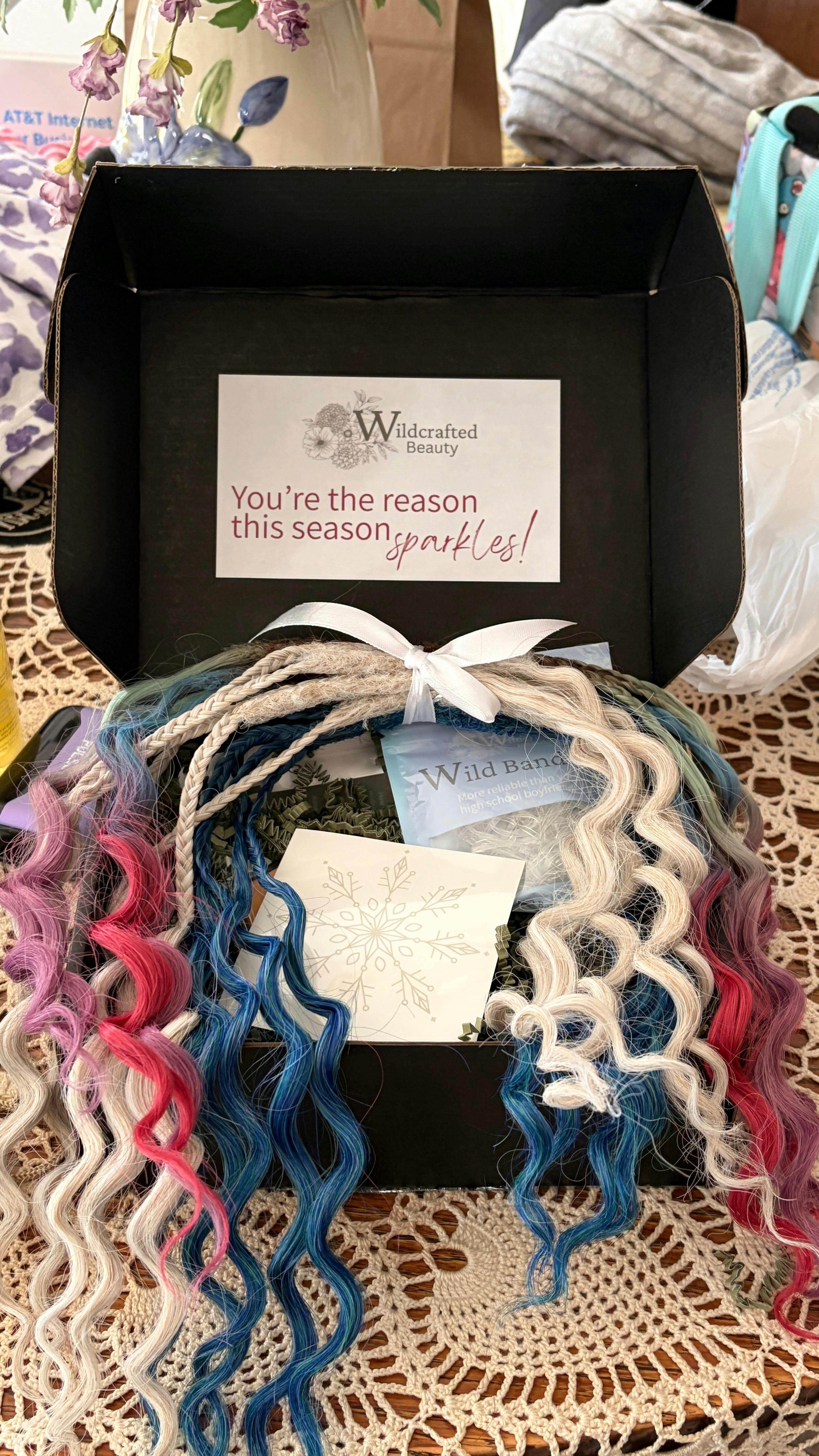 Wildcrafted extensions braid in seamlessly: two strands of your hair + one extension = a secure braid tied with Wild BandZ®. They protect your natural hair from heat and harsh products—no damage, no stress. When you’re ready, simply unbraid to remove.